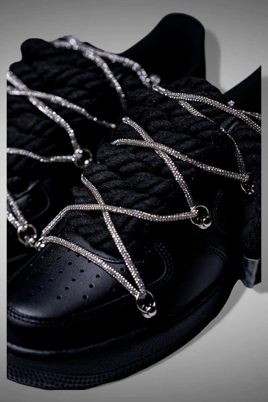 SNEAKERS NIKE AIR FORCE 1 "ROPE LACES BLACK" TRIPLE SILVER CUSTOM