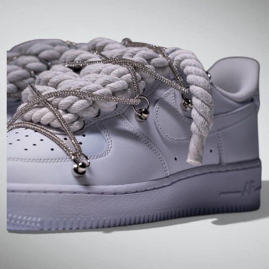 SNEAKERS NIKE AIR FORCE 1 "ROPE LACES WHITE" TRIPLE SILVER CUSTOM